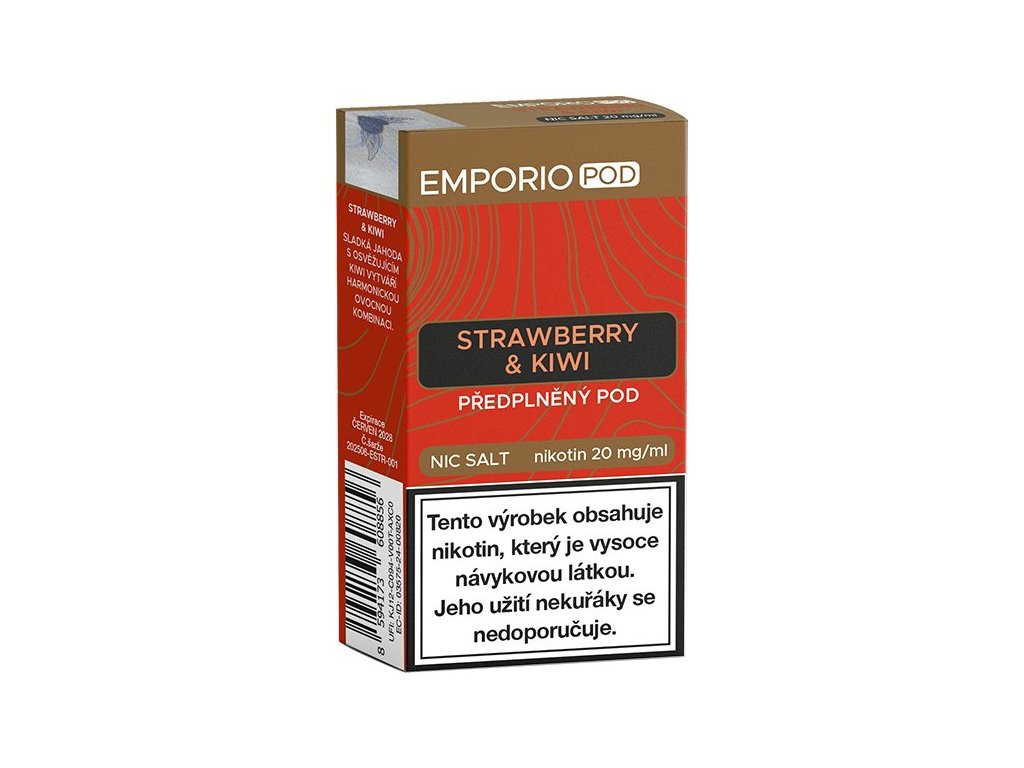 Zažijte jedinečný chuťový zážitek s EMPORIO POD cartridge Strawberry & Kiwi. Tato předplněná cartridge je ideální volbou pro milovníky sladkého ovoce, kteří hledají intenzivní a osvěžující chuť. S 2ml SALT liquidu a silou nikotinu 20mg poskytuje tato cartridge uspokojivý pocit z vapování, který je ideální pro každodenní použití.