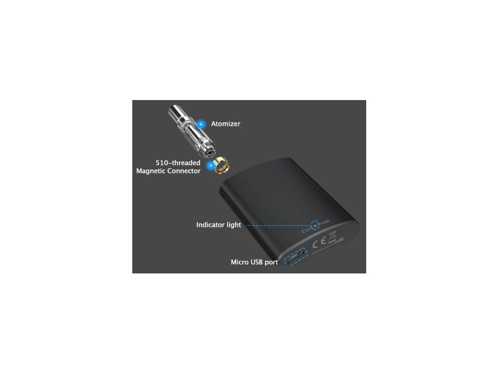 Závit clearomizeru je vybaven magnetickým konektorem a díky tomu se celý clearomizer jednoduše vloží do těla gripu (viz foto). Clearomizer iCare Flask o kapacitě 1ml disponuje zabudovanou žhavicí hlavou s keramickou cívkou o odporu 1ohm a organickou bavlnou. Po opotřebení žhavicí hlavy již nemusíte vyměňovat samotnou žhavicí hlavu, ale jednoduše nahradíte celý clearomizer novým - jedná se o nízkonákladový clearomizer.Parametry: