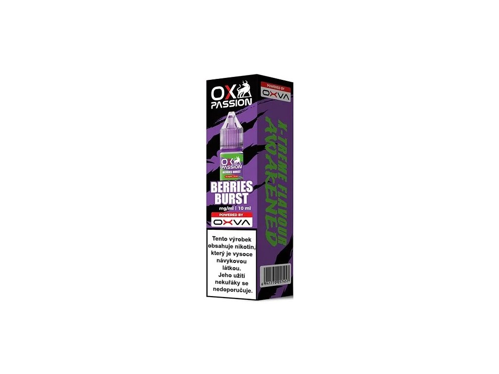 Objevte šťavnatou explozi chutí s liquidem OXVA OX PASSION Salts Berries Burst 10ml - 10mg. Kombinace ostružiny, borůvky a lesní jahody v prémiovém e-liquidu s nikotinovou solí...