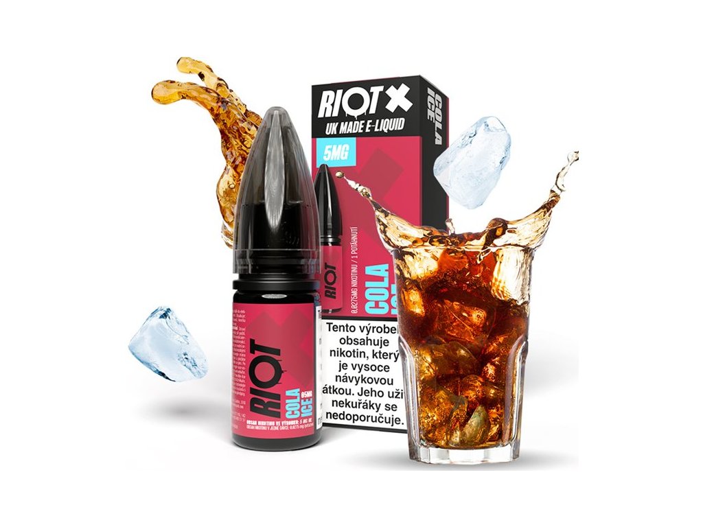 Objevte osvěžující zážitek s Liquid RIOT X Salt Cola Ice - ledová cola ve formě e-liquidu s nikotinovou solí 10mg v 10ml balení.