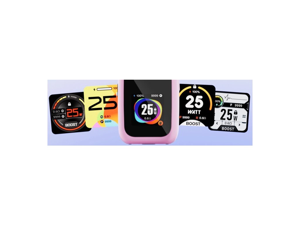 Zařízení je vybaveno novým Ursa V3 podem s kapacitou 2.5ml a horním plněním, což zajišťuje jednoduchou údržbu a kompatibilitu s cartridgemi Ursa V1, V2 a V3. Velký 1.3" TFT barevný displej poskytuje pět volitelných uživatelských rozhraní, které zobrazují klíčové informace jako stav baterie, výkon a počet potahů.