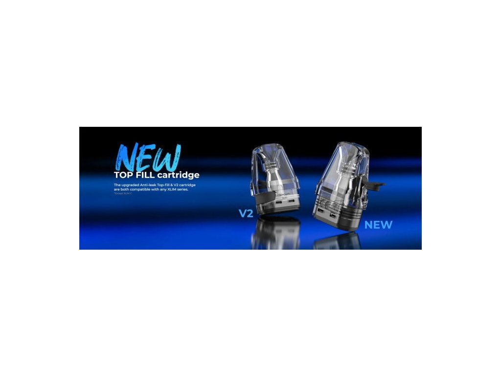 Cartridge Xlim V2 prošly proměnou z bočního plnění na uživatelsky přívětivé horní plnění - není potřeba vyndavat cartridge z těla baterie při plnění liquidem. Tyto cartridge jsou navzájem plně kompatibilní.