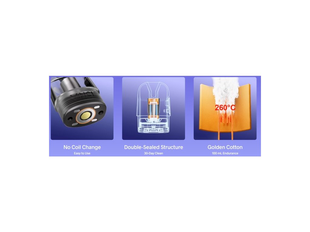 Nová cartridge VINCI E s objemem 5ml nabízí varianty odporu 0,3/0,6 a 0,8ohmu, což umožňuje bohatou chuť a flexibilitu páry. Vyrobena z odolné hliníkové slitiny a vybavena TFT 1,47palcovým displejem, E80 vyvažuje funkčnost s přenosností.